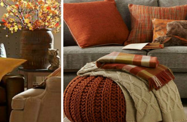 Wenn Sie die Farbe ausgesucht haben, können Sie sich an die Arbeit machen. Wenn die Wand einmal gestrichen ist, müssen Sie wieder eine Farbe aussuchen, die etwas im Kontrast mit der ersteren steht, damit werden Sie die Schablonen mit Herbstmotiven bemalen (wie Sie im Foto oben sehen können). Und schon ist der erste Schritt getan, für ein herbstliches Wohnzimmer.