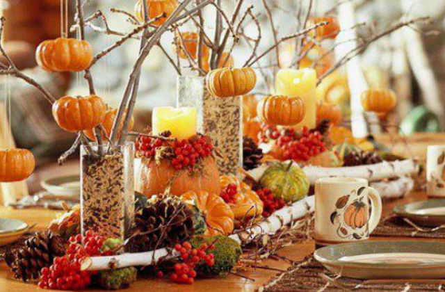 Deko und Unterteller im Herbstmotiv (wie im Foto hier unten) um die Lounge dauerhaft herbstlich zu machen. Kissen und Sofas sollten mehr Farben haben und die Farben der Jahreszeit kontrastieren und zurückrufen, die wir erfahren.