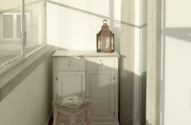 Das letzte Beispiel ist eine weitere minimalistische Lösung, ganz in Weiss, mit einer einzigen Bank mit Kissen. Diese Bank hat mehrere Verwendungsmöglichkeiten. Der Balkon wirkt so ganz einfach, aber auch praktisch und entspannend; somit können Sie die Aussicht auf einem Berg von Kissen geniessen.
