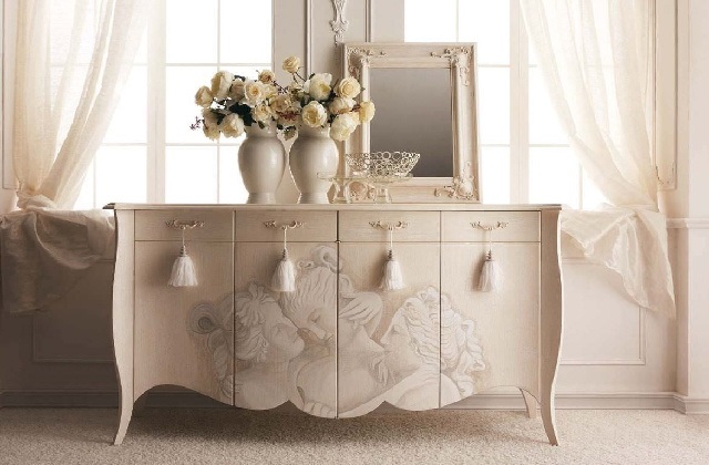 Neben dem Holz können wir auch Stoffe, die eine natürliche Farbe haben, auswählen und auch in diesem Fall ist Beige die beste Wahl. Also setzen Sie auf einen schönen Vorhang aus dicker Leine oder aus Baumwolle in Cremefarbe. Wenn Sie eher der romantische Typ sind, heuern Sie einen Künstler an und lassen Sie ihn die Vorhänge dekorieren, in den gleichen Farben wie die anderen Möbel. So wirkt alles raffinierter und eleganter.