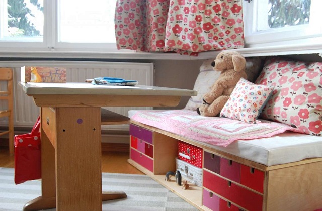Der Stuhl des Schreibtisches sollte bequem sein und passend für die Größe des Kindes. Stellen Sie auch Regal in die Nähe des Schreibtisches, damit die Bücher auch in greifbarer Nähe sind. So wird das Kind weniger aufstehen müssen und sich auch weniger ablenken.