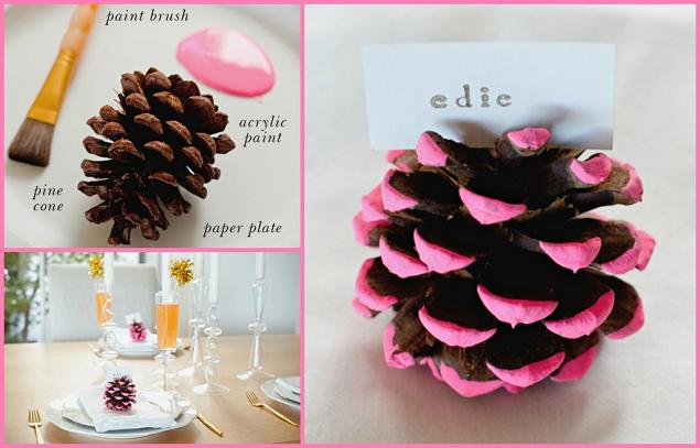 Zapfen sind ganz einfach zu findende Dekos in dieser Jahreszeit und es ist eine wirklich originelle Idee, um einen preiswerten und sehr hübschen Platzhalter zu kreieren.