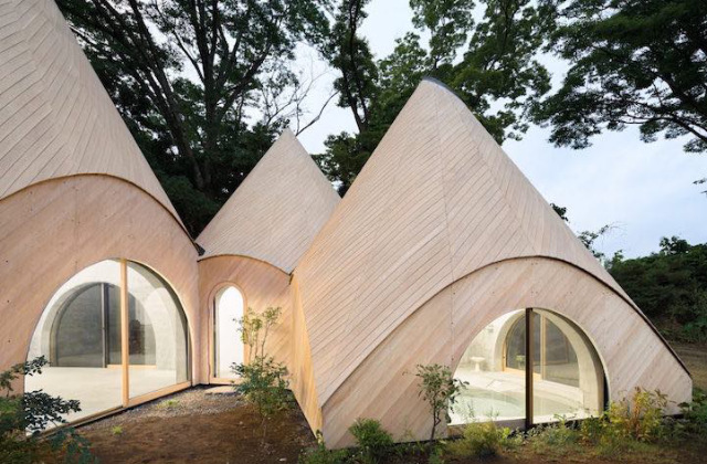 Das Haus verfügt auch über einen Pool ohne Treppen, damit man von aussen ganz mühelos in den Pool steigen kann. Er hat die Form einer Muschel und die Spirale widerspiegelt die des Kegeldaches.