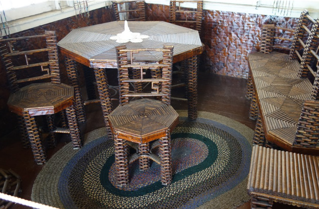 Dadurch werden der Fußboden und die Wände von der Feuchtigkeit isoliert. Als die Wände des Hauses im Jahr 1924 angefertigt wurden, hat Elis Stenmanù angefangen auch die ganze Einrichtung aus Zeitungspapier anzufertigen.