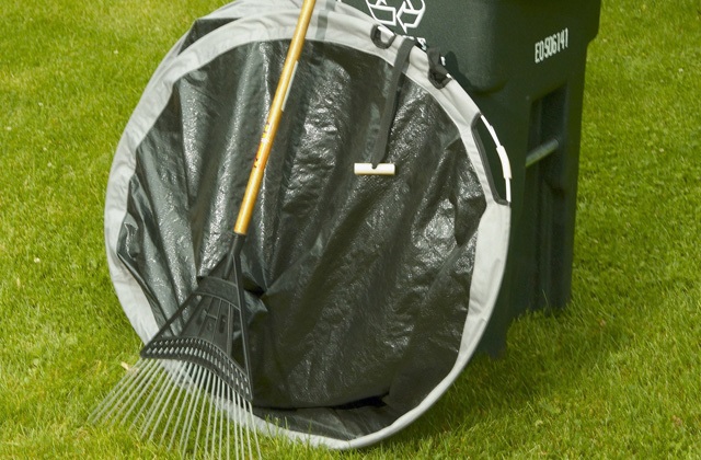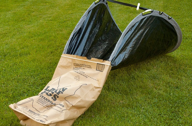 Der Leaf Loader ist nützlich, weil er auch nicht viel Platz wegnimmt. Wenn man die Arbeit beendet hat, kann man den Sack wieder zusammen falten und man kann ihn wirklich überall verstauen.