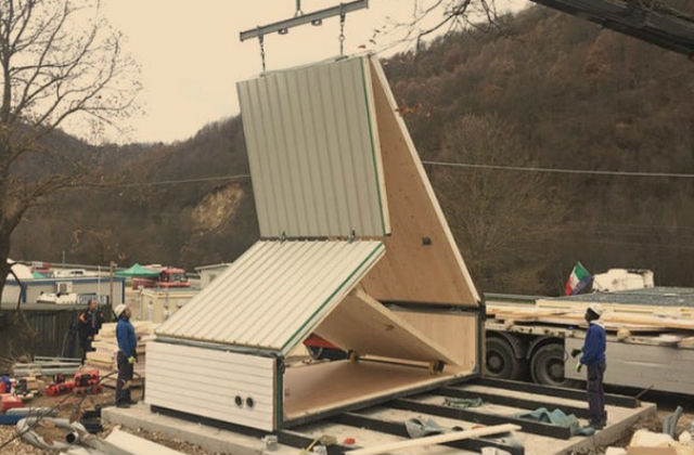 Es ist wichtig zu erwähnen, dass das bewohnbare aufklappbare Modul M.A.Di keine Basis braucht, um aufgebaut zu werden. Die Struktur verfügt auch über Solarpanele, wodurch es sich selbst versorgt und ein Bewässerung System, dass das Wasser recyclet und eine Beleuchtung mit LED-Lichter. Es ist ein Haus, dass also auch als Ferienwohnung taugen kann und auch ausserhalb der Stadt funktioniert.