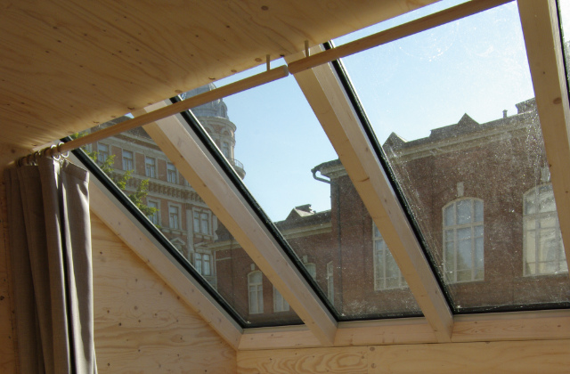 Das Kokoon ist ein mobiles System und die Module können überall zusammengefügt werden. Die Flexibilität des Projektes ermöglicht es viele wichtige Eingriffe zu machen, damit man mehr Platz zur Verfügung hat, auch dort wo die Quadratmeter sehr wenige sind.